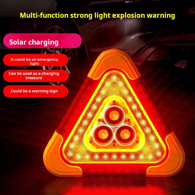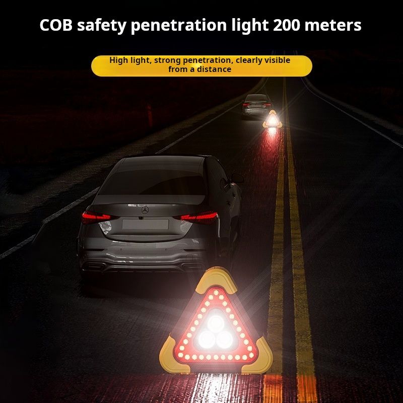 Stranded on a dark road? A regular reflective triangle won‘t save you. Our 3-in-1 Warning Sign with Super-Bright LED Lights makes you seen from 500m away!